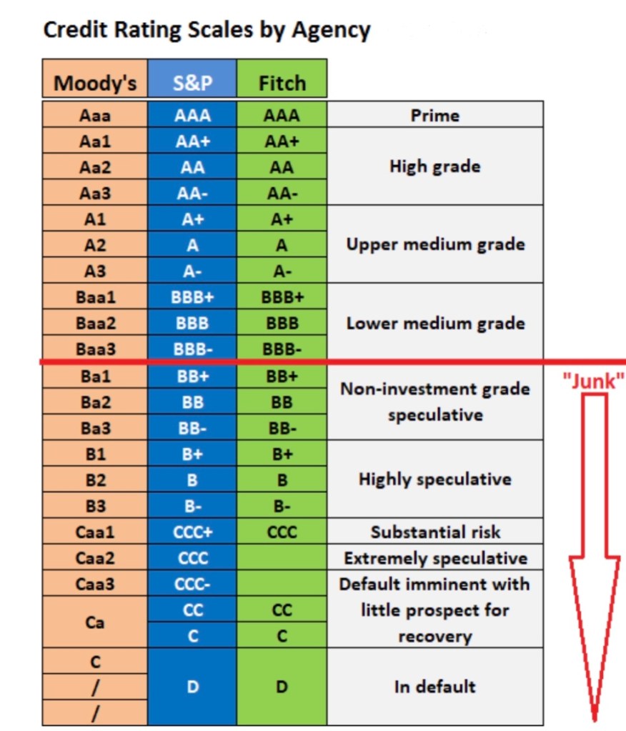 Ratings agencies, such as Moody’s, Standard & Poor’s, and Fitch Ratings assess bonds based on their creditworthiness, which means their ability to make payments in a timely manner. They assign bond ratings to corporate bonds, which range from AAA (the highest) to D (the lowest).